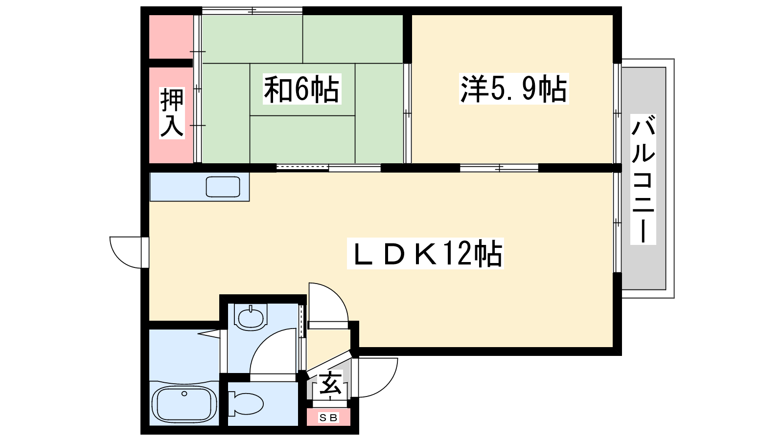 - LDK12帖、洋室5.9帖、和室5.9帖