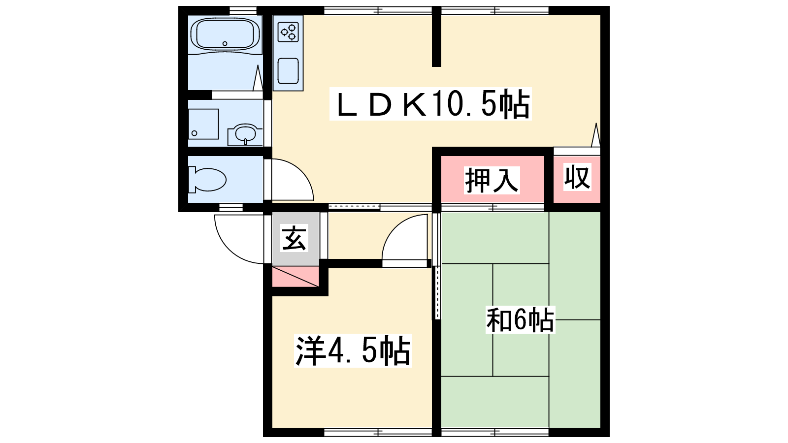 - LDK10.5帖、洋室4.5帖、和室6帖
