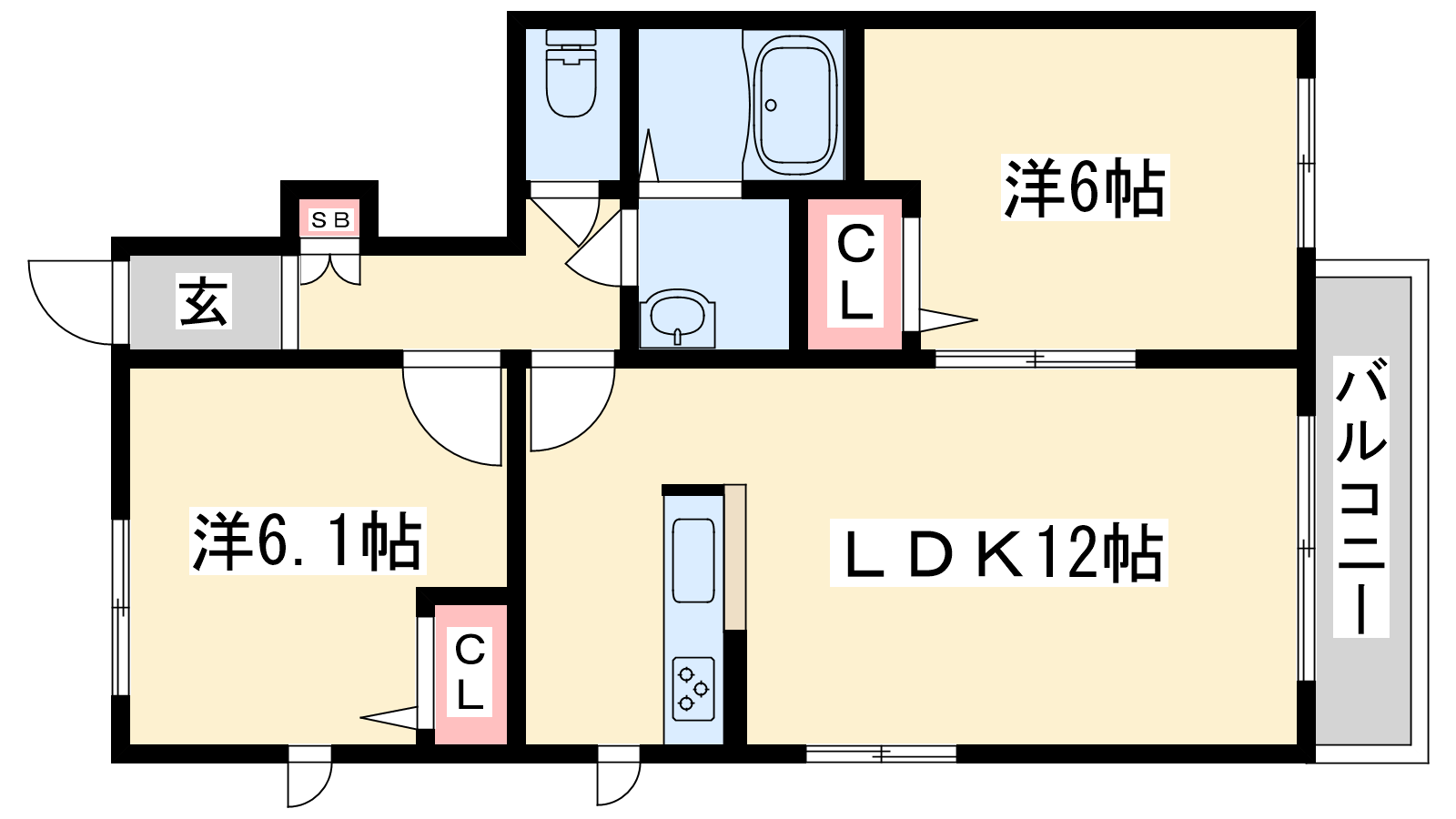 - LDK12帖、洋室6.1帖、洋室6帖