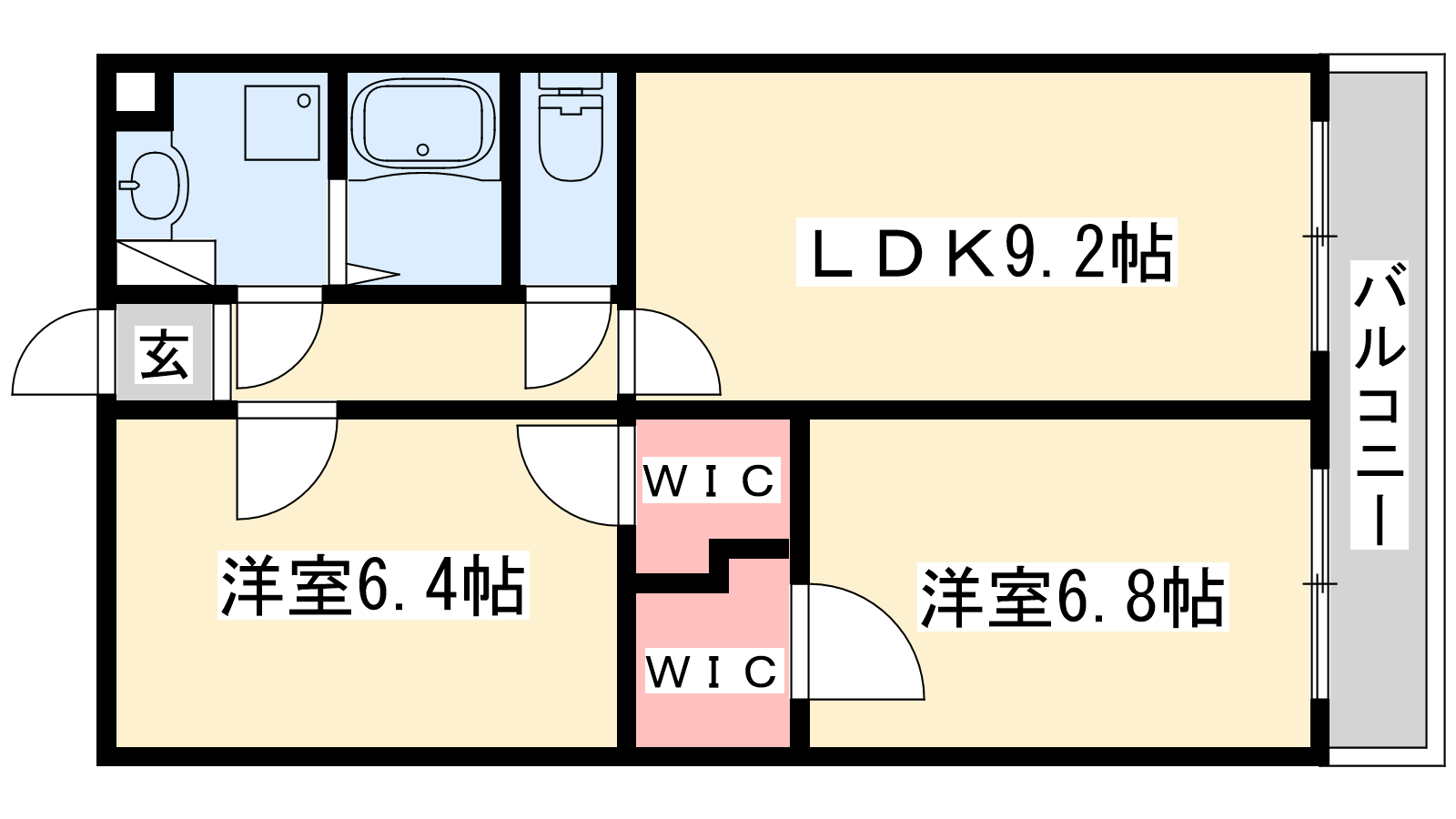 - LDK9.2帖、洋室6.8帖、洋室6.4帖