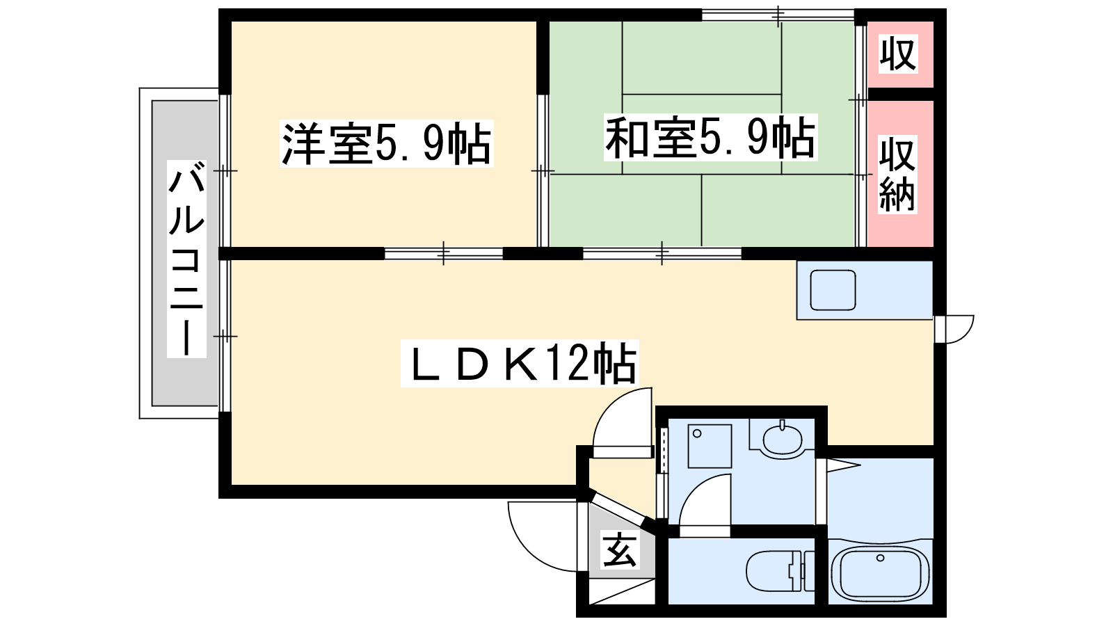 - LDK12帖、洋室5.9帖、和室5.9帖
