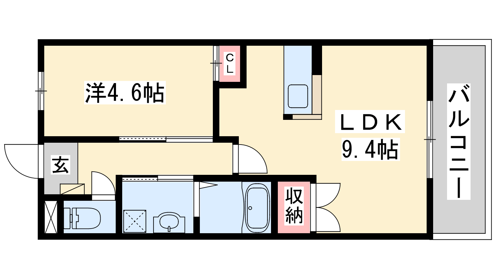 - LDK9.4帖、洋室4.6帖