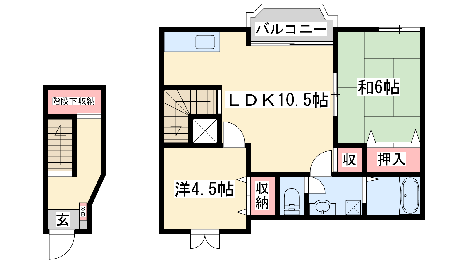 - LDK10.5帖、和室6.7帖、洋室4.5帖