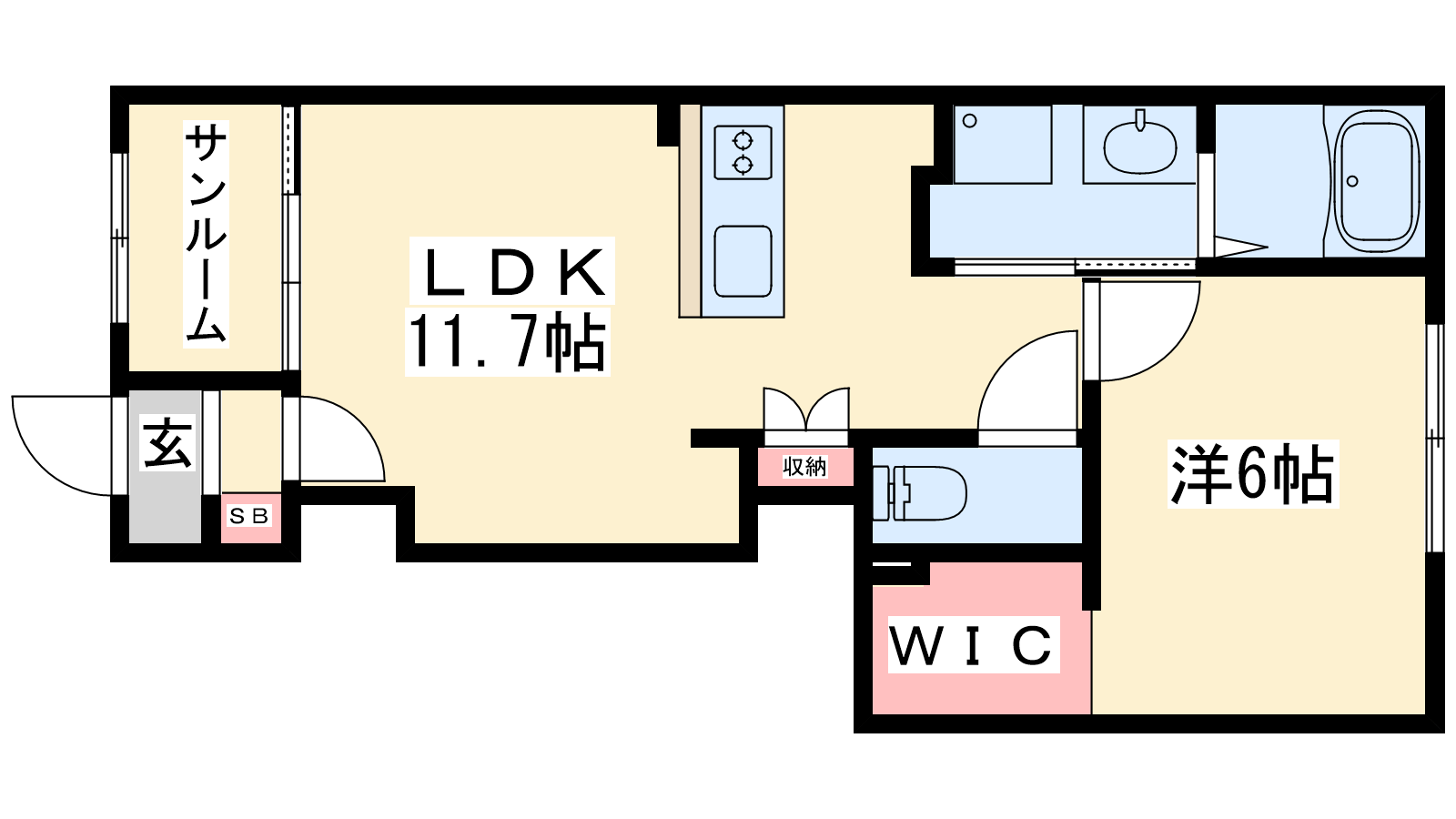 - LDK11.7帖、洋室6帖