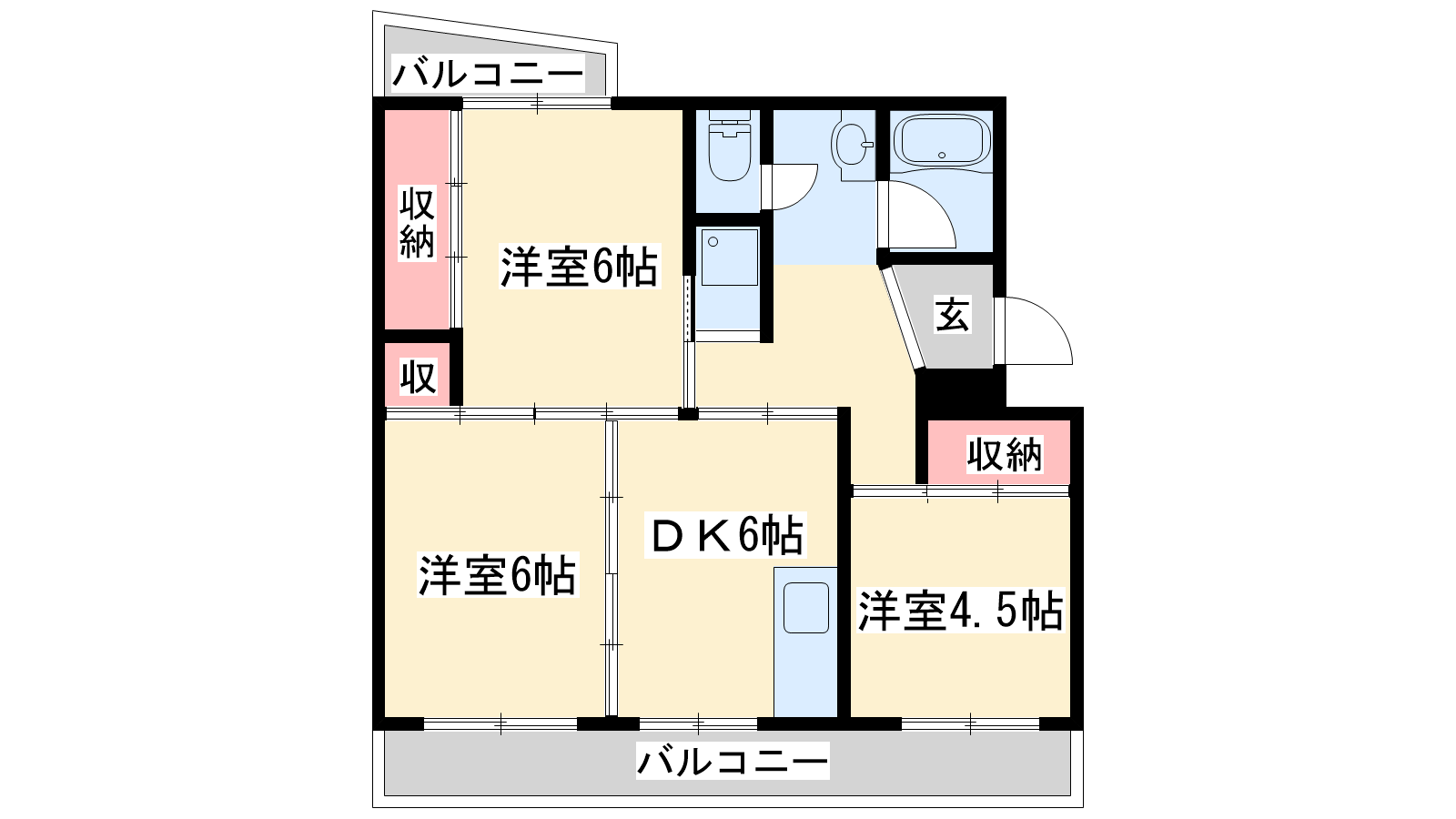 - DK6帖、洋室6帖、洋室6帖、洋室4.5帖