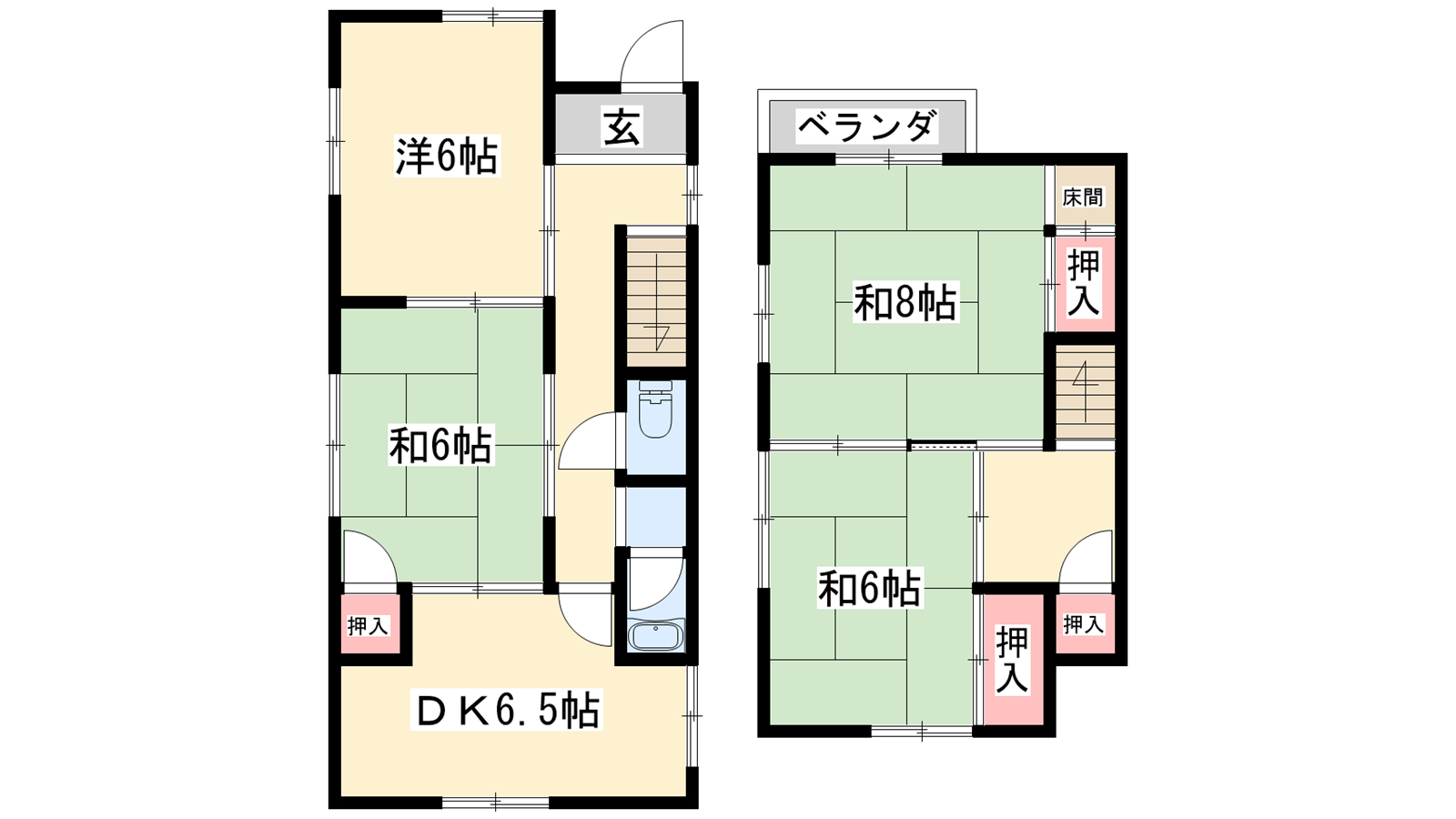 - DK6.5帖、和室8帖、洋室6帖、和室6帖、和室6帖