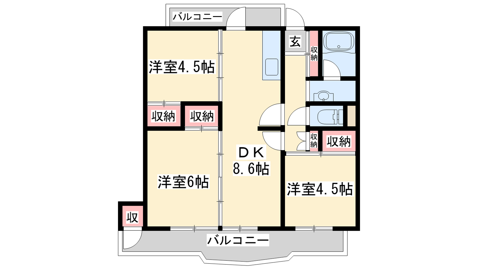- DK8.6帖、洋室6帖、洋室4.5帖、洋室4.5帖