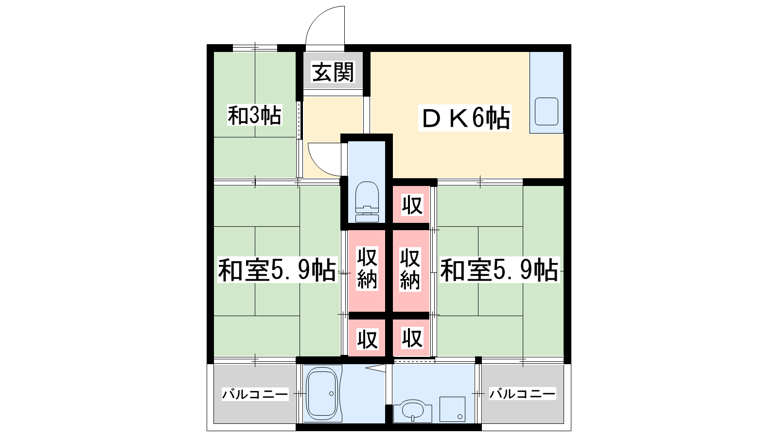- DK6帖、和室5.9帖、和室5.9帖、和室3帖