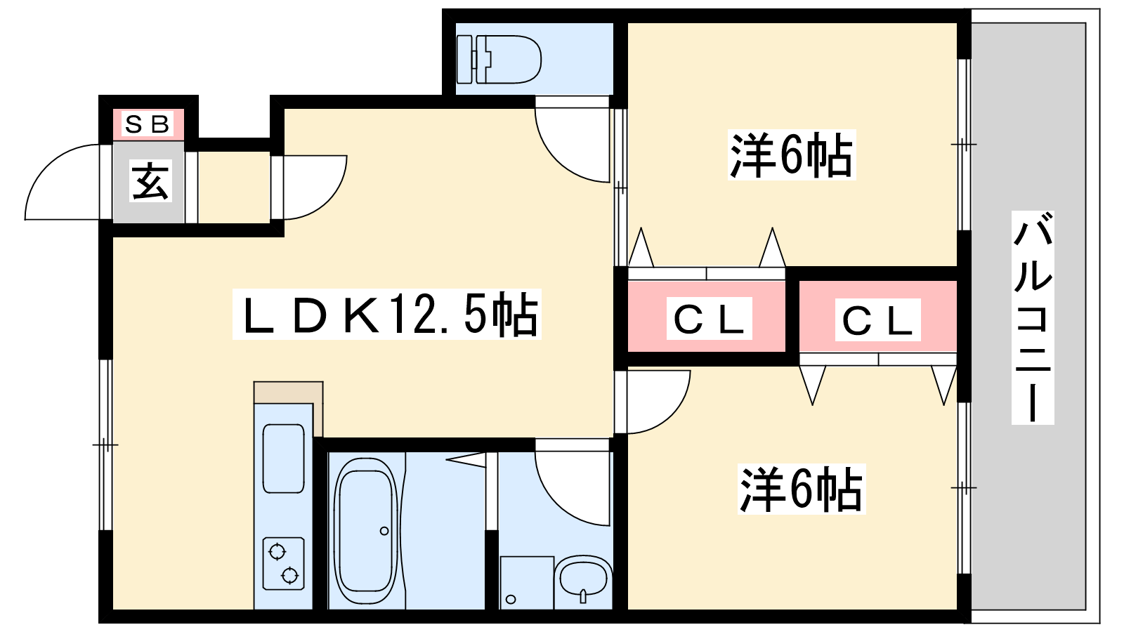 - LDK12.5帖、洋室6帖、洋室6帖