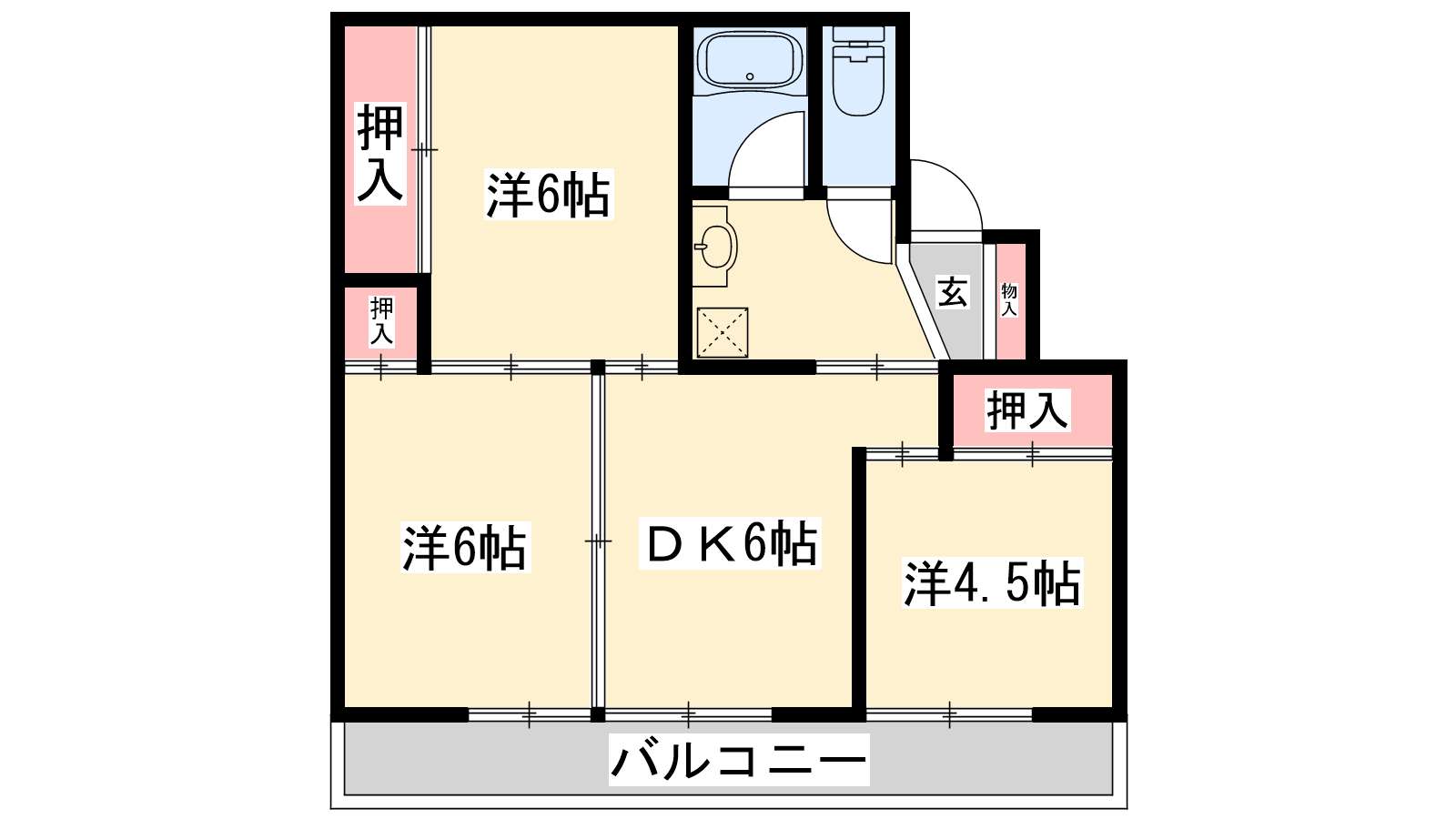 - DK6帖、洋室6帖、洋室6帖、洋室4.5帖