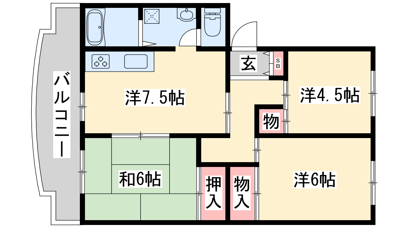 - DK7.5帖、洋室6帖、洋室4.5帖、和室6帖
