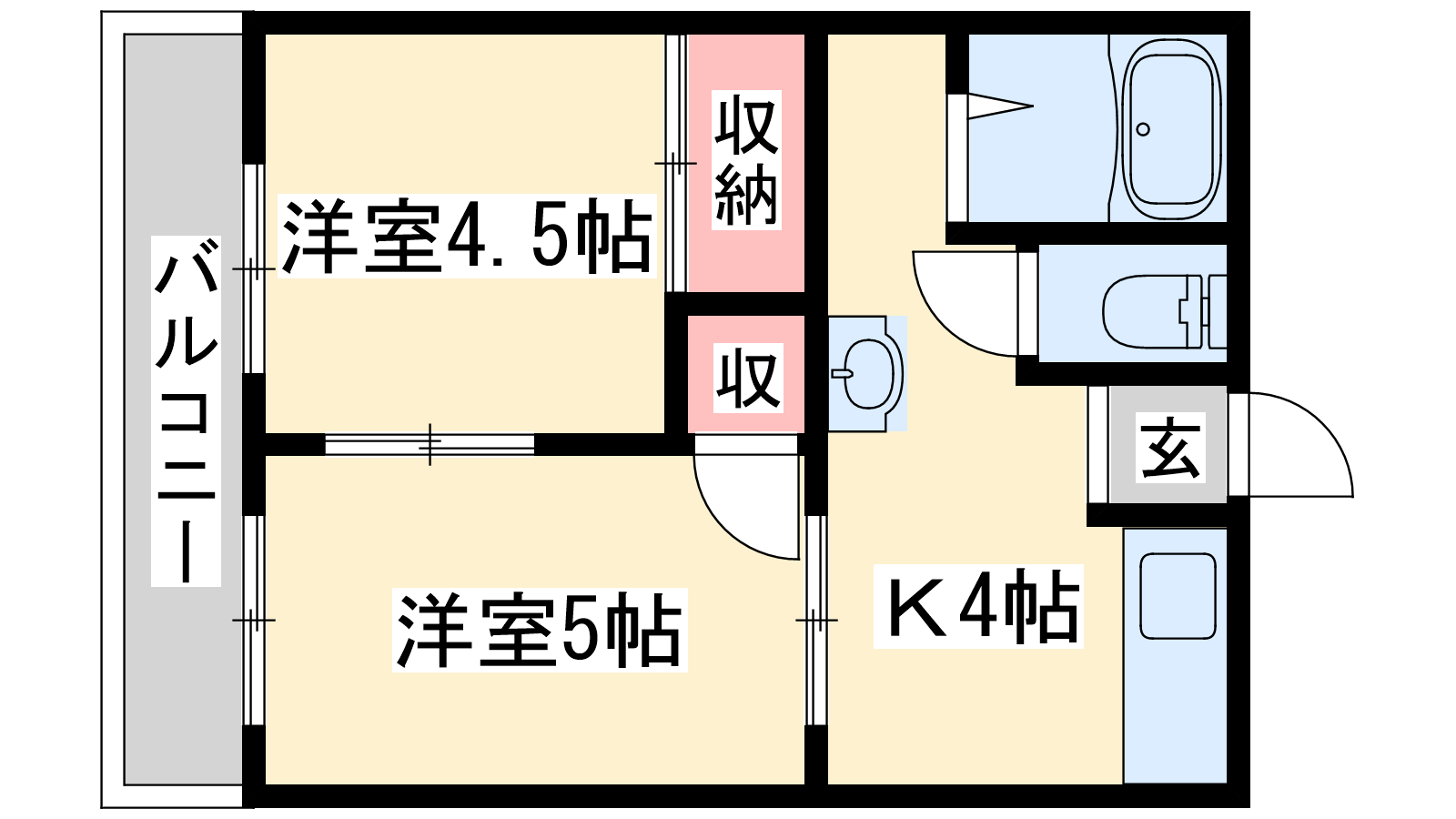 - K4帖、洋室5帖、洋室4.5帖