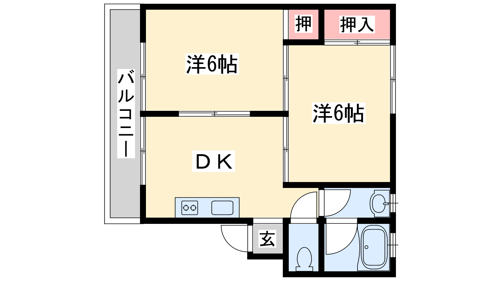 - DK6帖、洋室6帖、洋室6帖