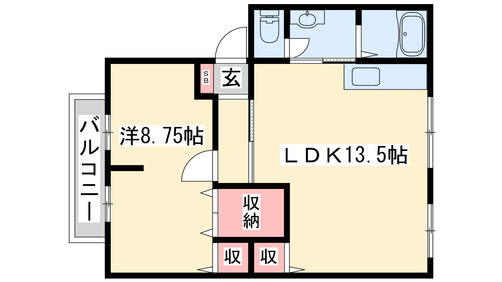 - LDK13.5帖、洋室8.75帖