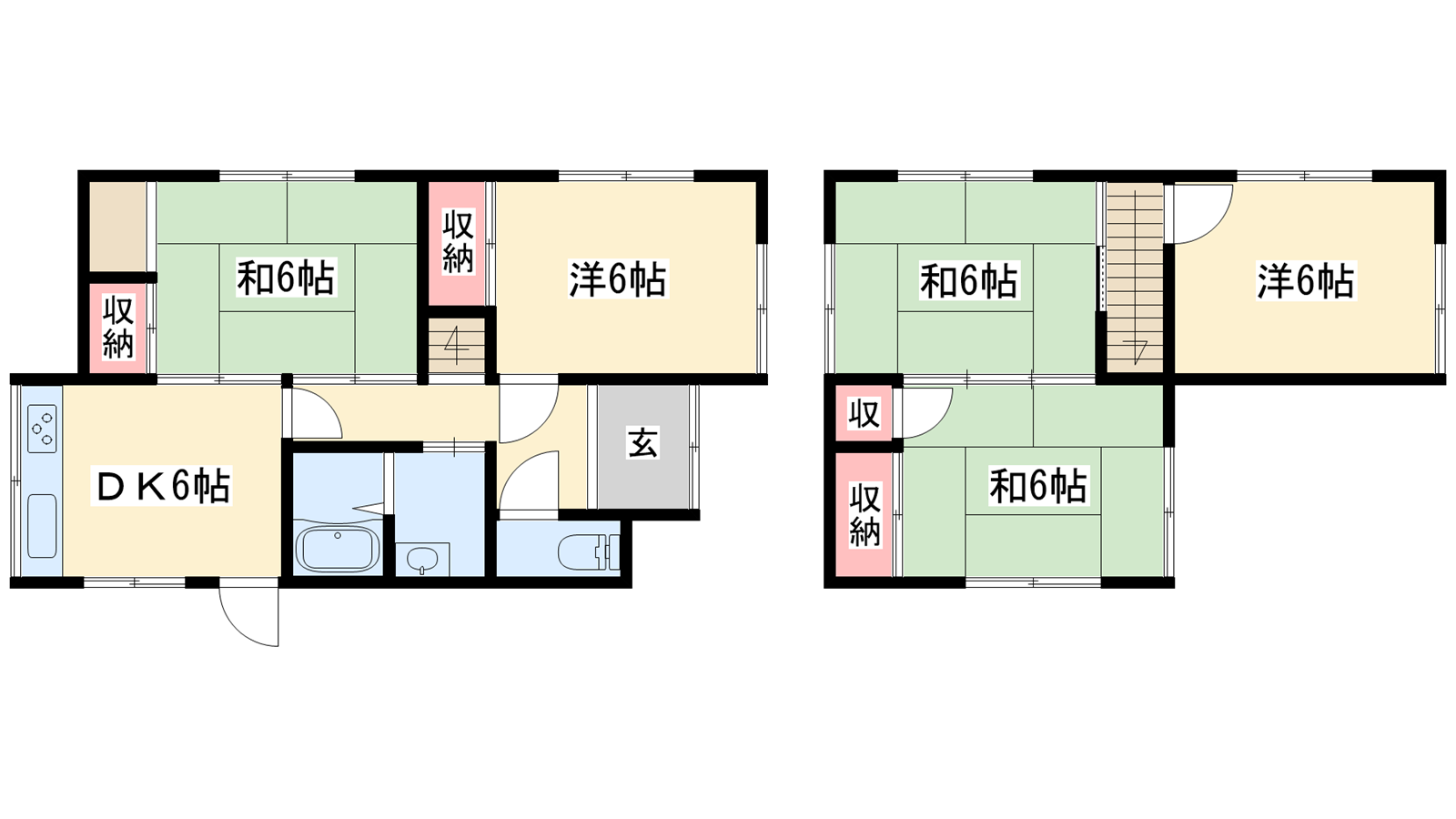 - DK6帖、洋室6帖、洋室6帖、和室6帖、和室6帖、和室6帖