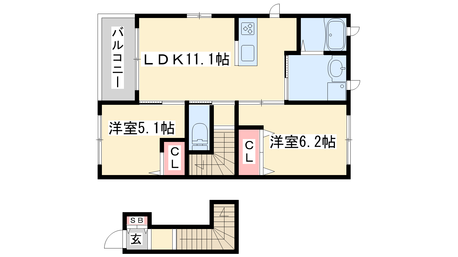 - LDK11.1帖、洋室6.2帖、洋室5.1帖