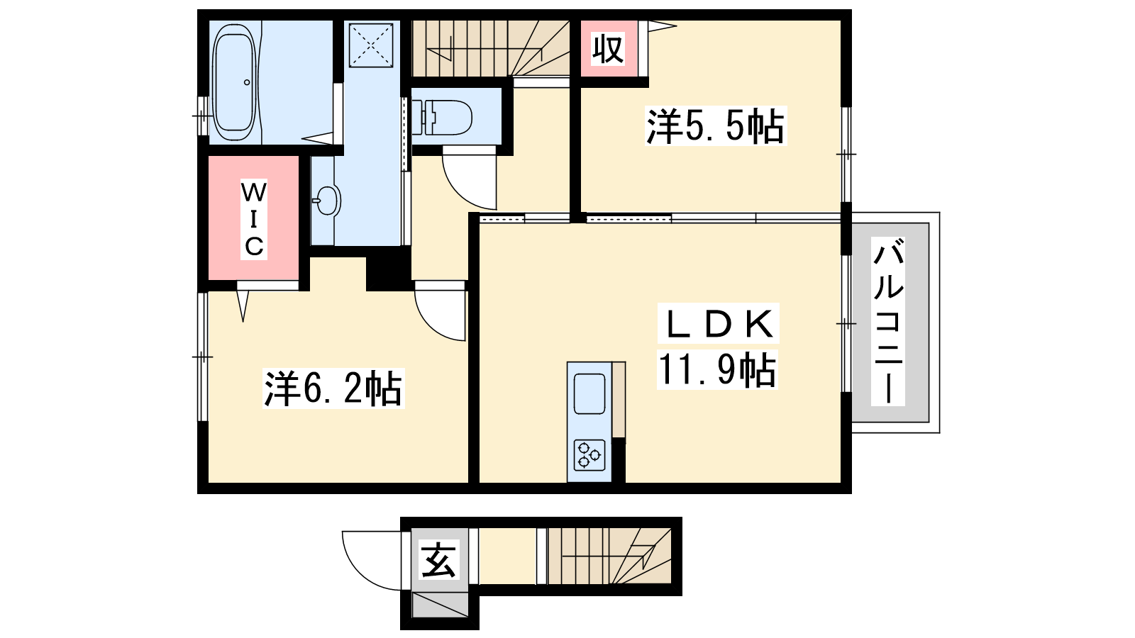 - LDK11.9帖、洋室6.2帖、洋室5.5帖