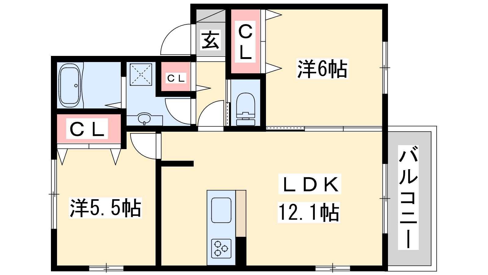- LDK12.1帖、洋室6帖、洋室5.5帖