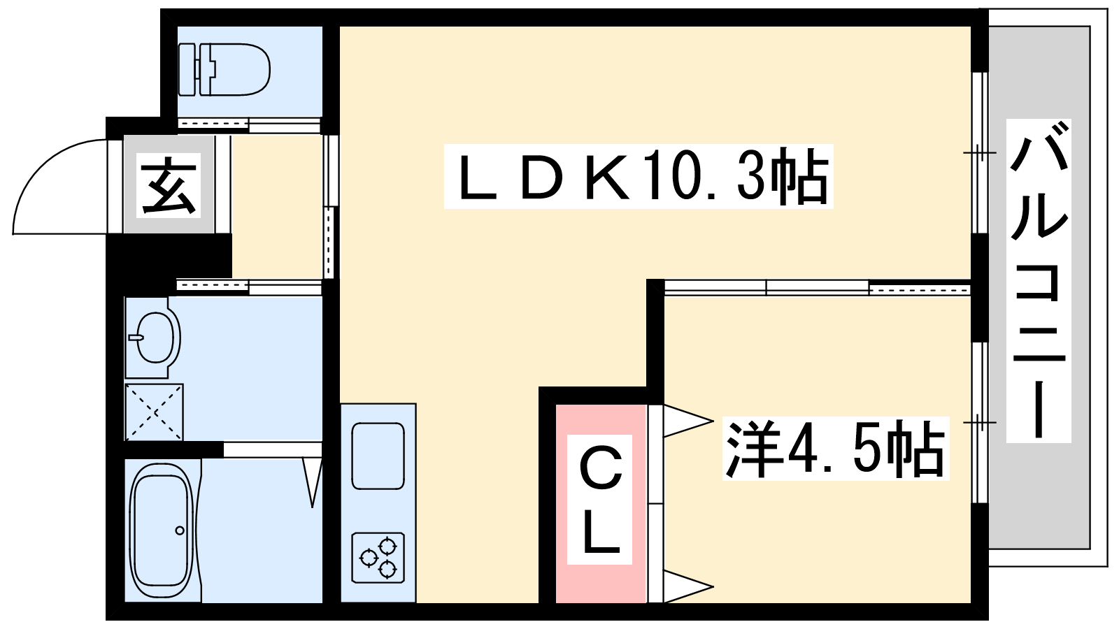 - LDK10.3帖、洋室4.5帖