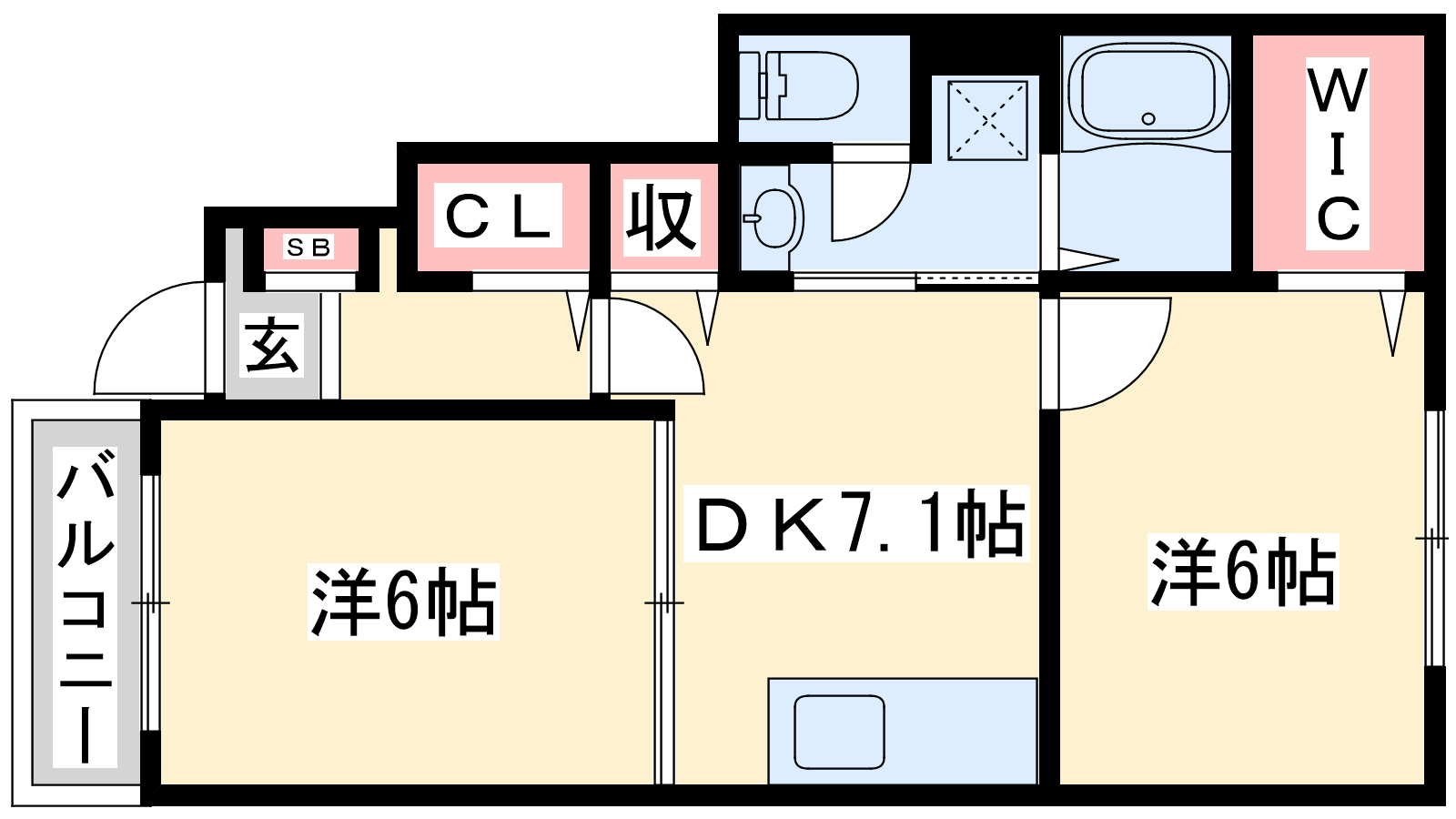 - DK7.1帖、洋室6帖、洋室6帖