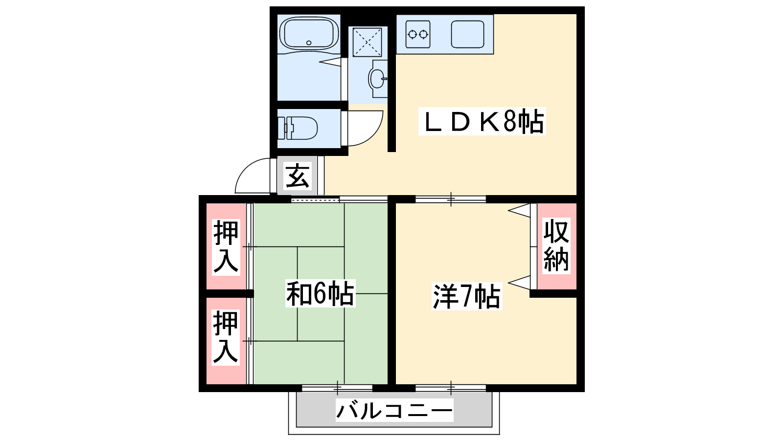 - LDK8帖、洋室7帖、和室6帖