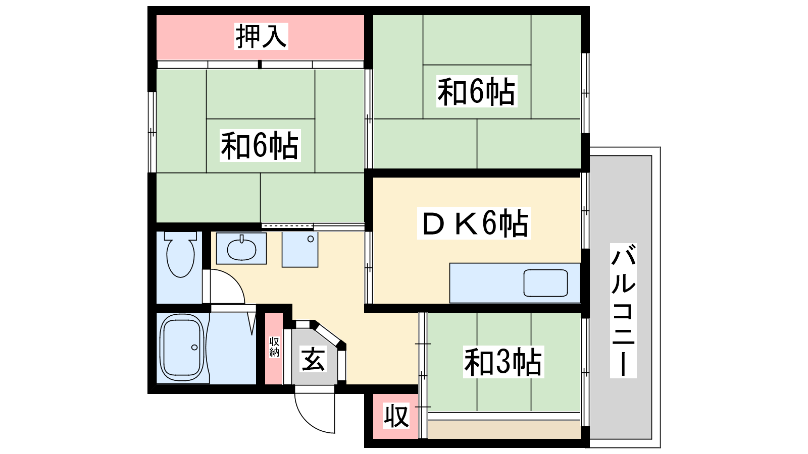 - DK6帖、和室6帖、和室6帖、洋室3帖