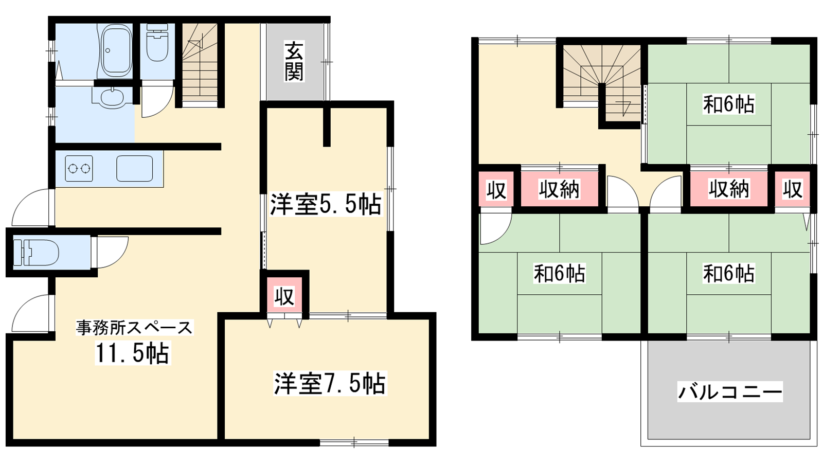 - LDK11.5帖、洋室7.5帖、和室6帖、和室6帖、和室6帖、洋室5.5帖