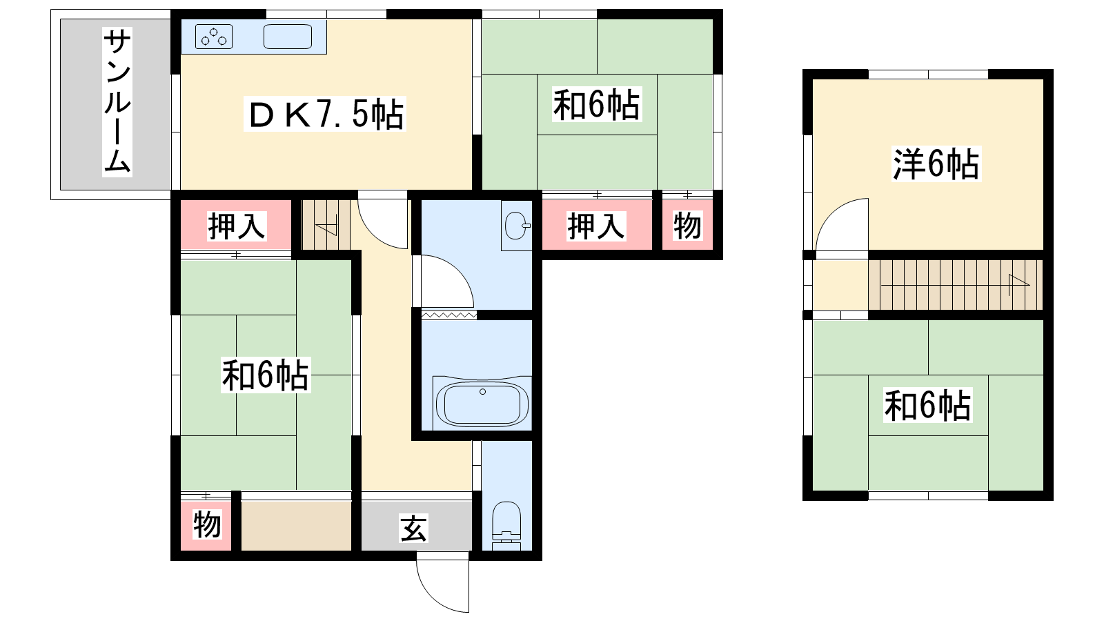 - DK7.5帖、洋室6帖、和室6帖、和室6帖、和室6帖