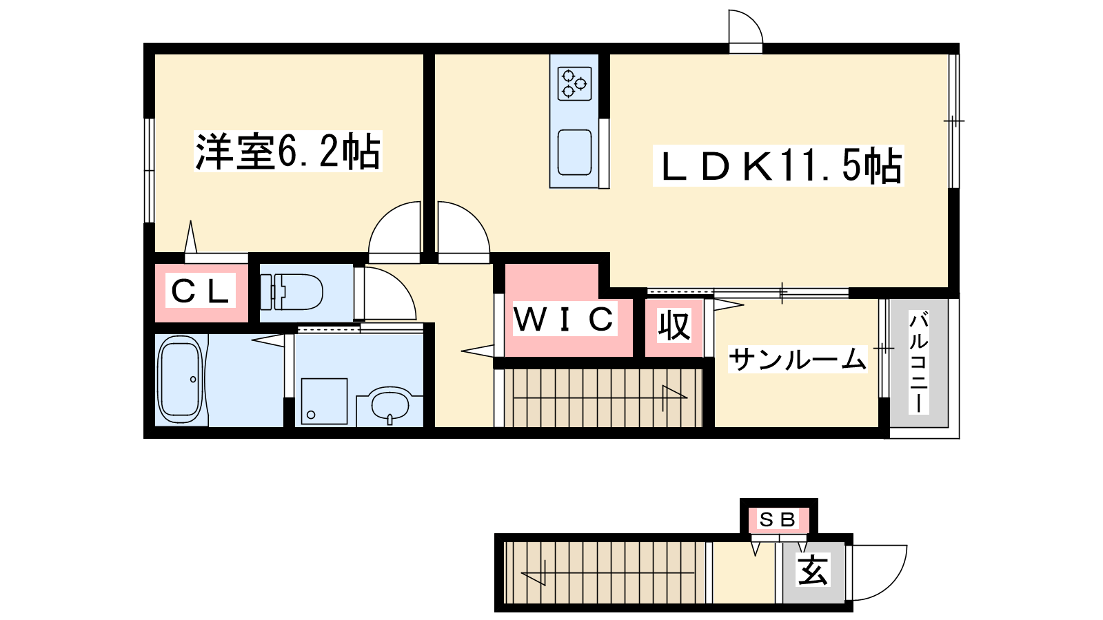 - LDK11.5帖、洋室6.2帖