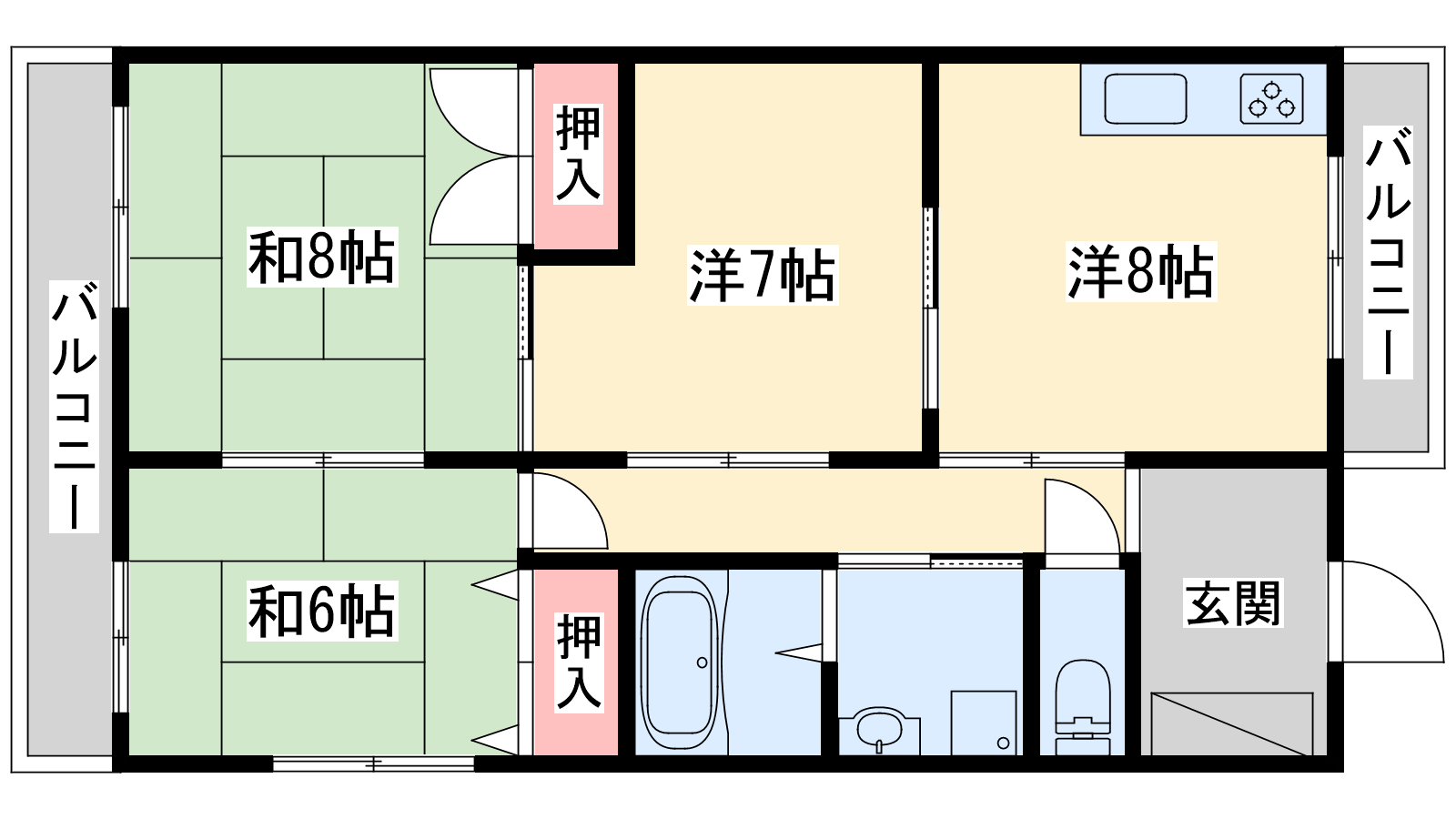 - DK8帖、洋室7帖、和室8帖、和室6帖