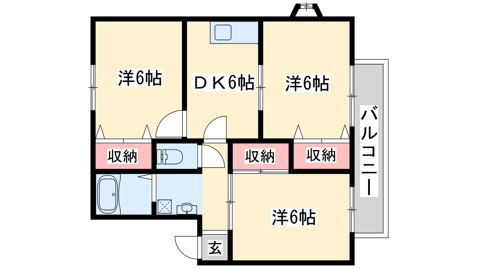 - DK6帖、洋室6帖、洋室6帖、和室6帖
