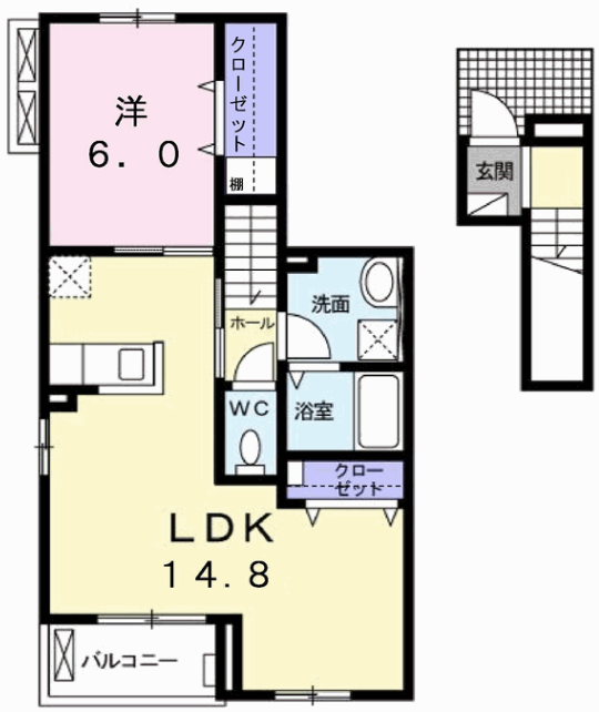 - LDK14.8帖、洋室6帖