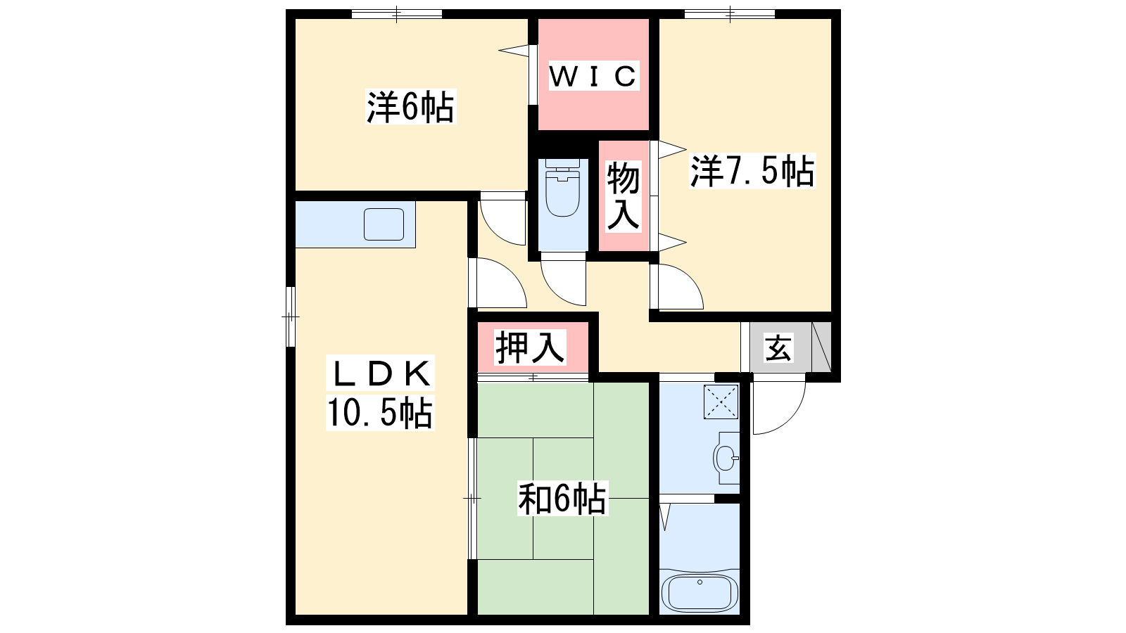 - LDK10.5帖、洋室7.5帖、洋室6帖、和室6帖