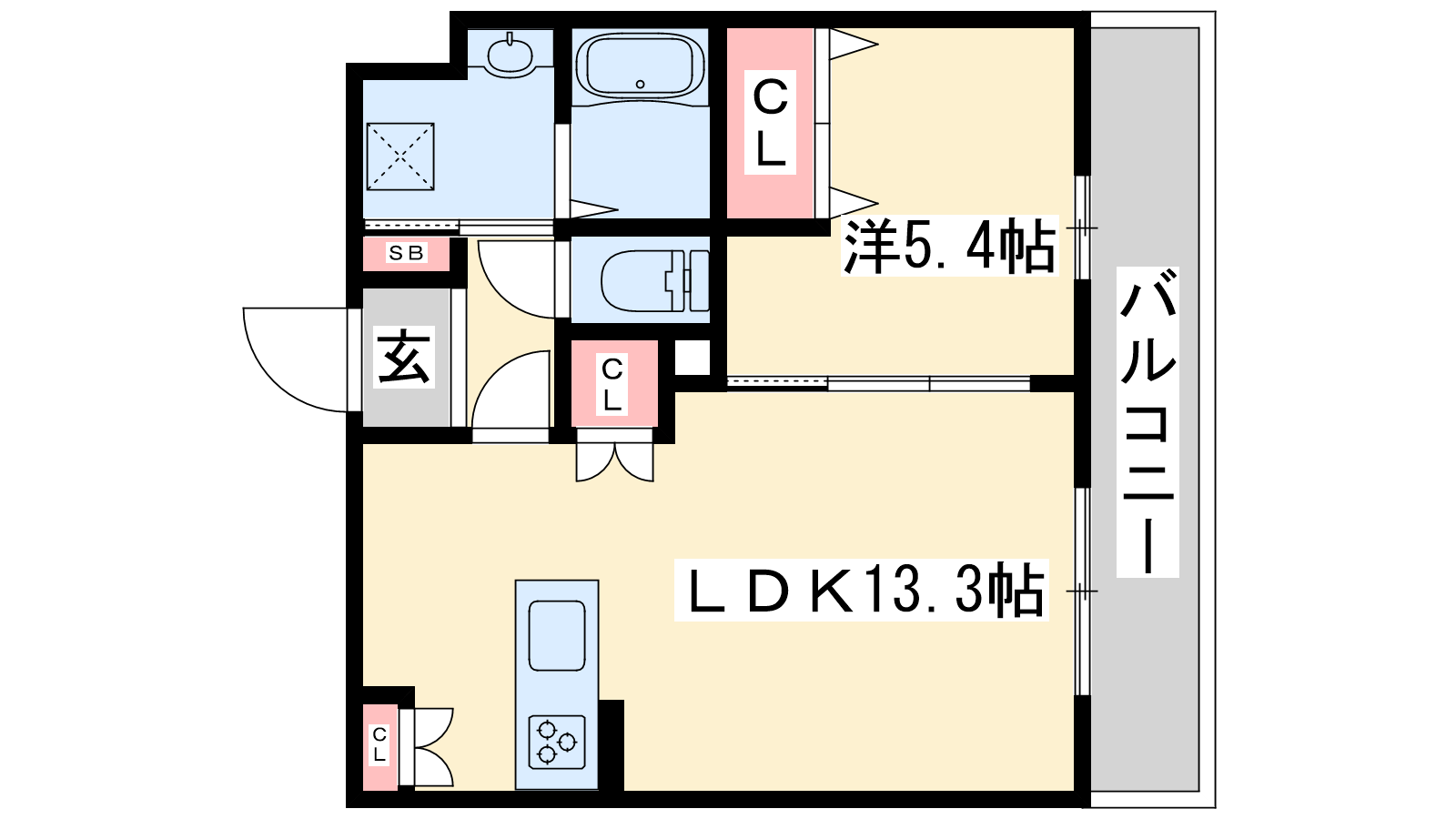 - LDK13.3帖、洋室5.4帖