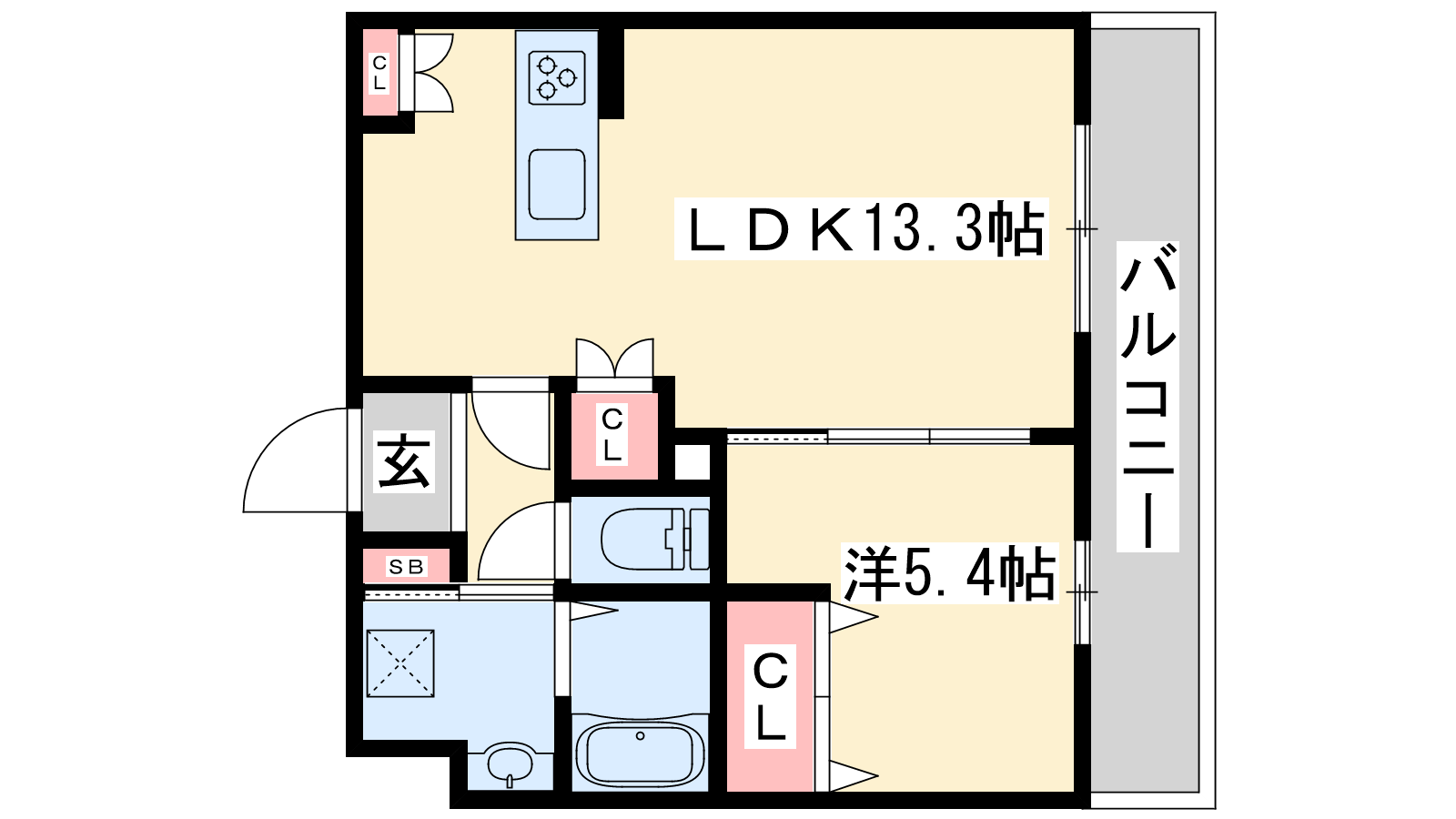 - LDK13.3帖、洋室5.4帖