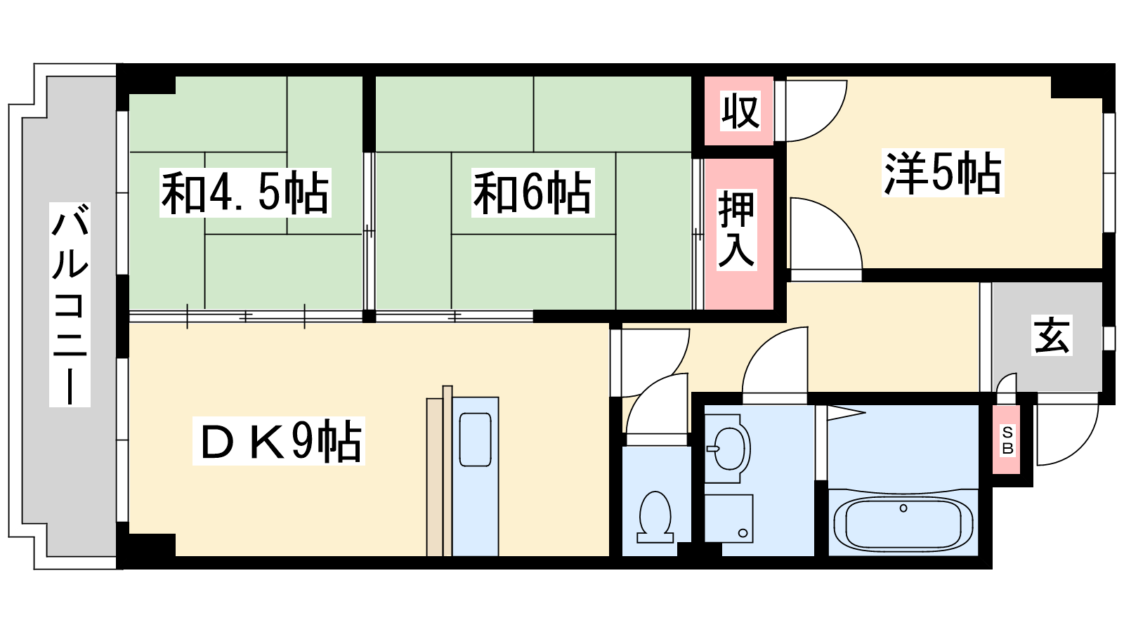 - DK9帖、洋室5帖、和室6帖、和室4.5帖