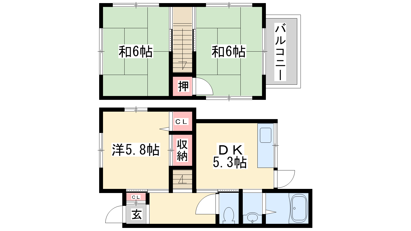 - DK5.3帖、洋室5.8帖、和室6帖、和室6帖
