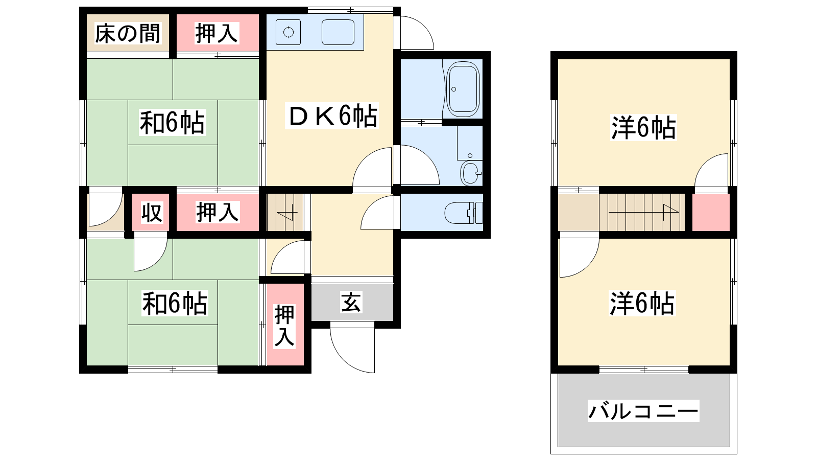 - DK6帖、洋室6帖、洋室6帖、和室6帖、和室6帖