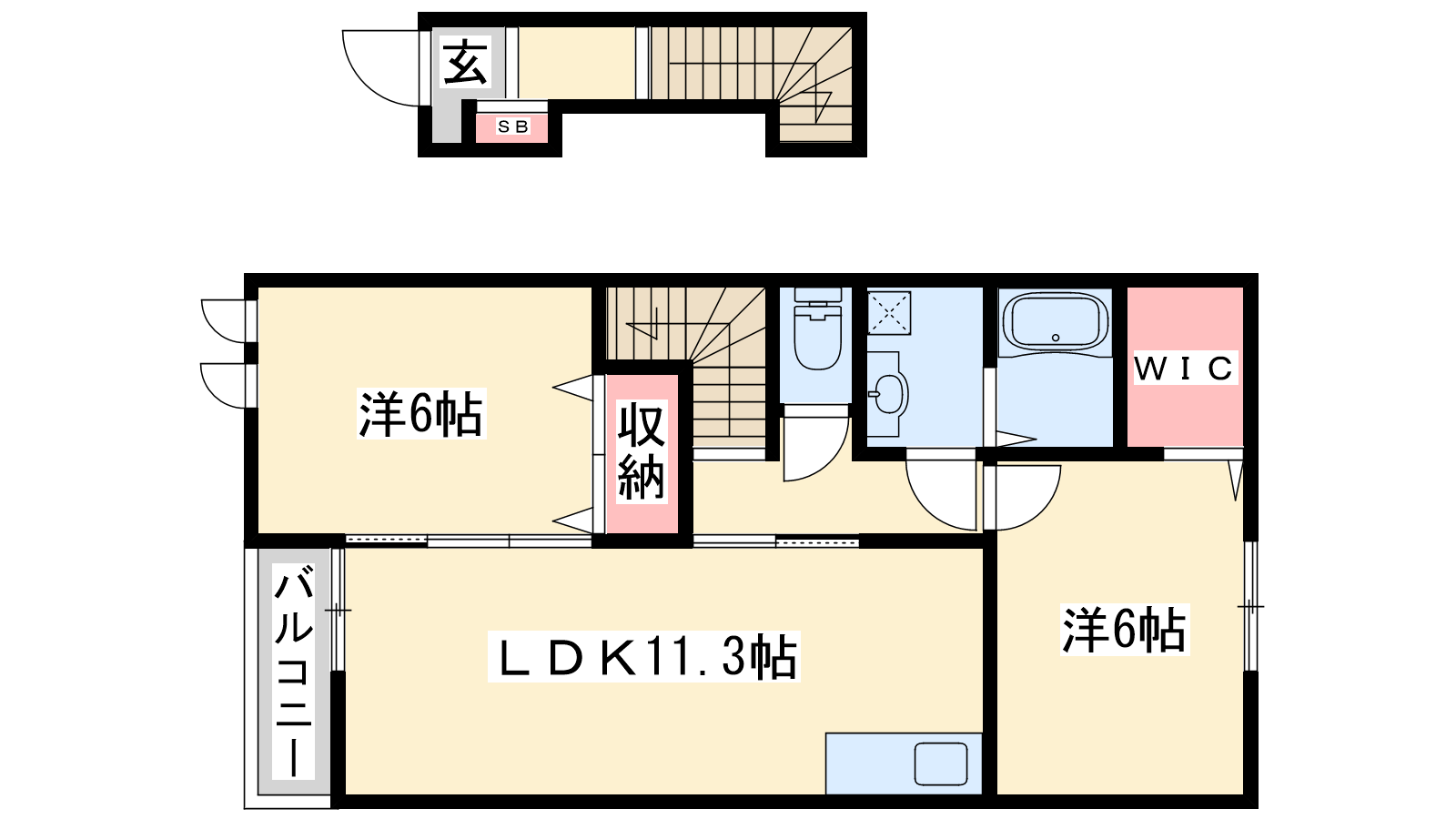 - LDK11.2帖、洋室6帖、洋室6帖