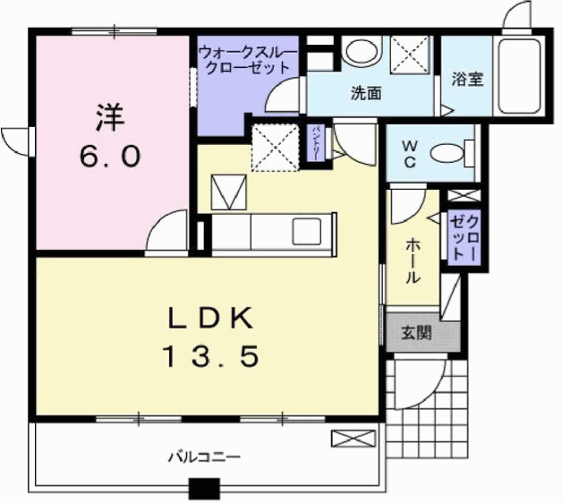 - LDK13.5帖、洋室6帖
