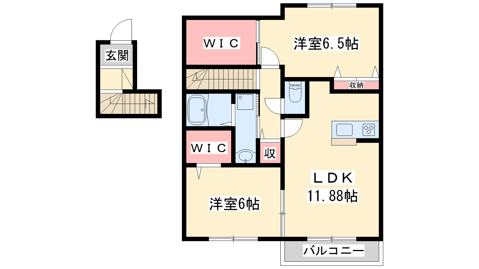 - LDK11.8帖、洋室6.5帖、洋室6帖