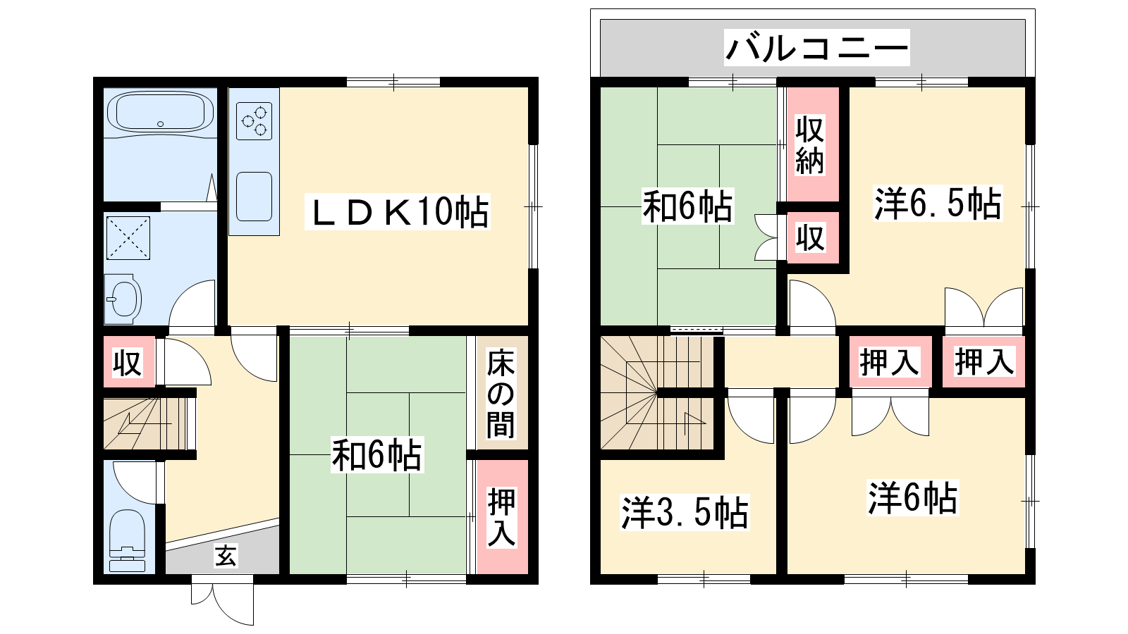 - LDK10帖、洋室6.5帖、洋室6帖、和室6帖、和室6帖、洋室3.5帖