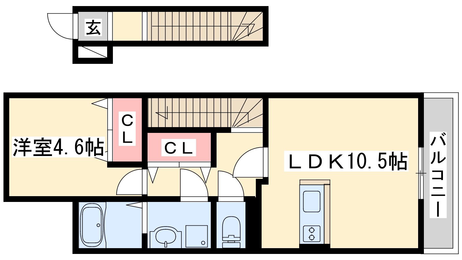 - LDK10.5帖、洋室4.6帖