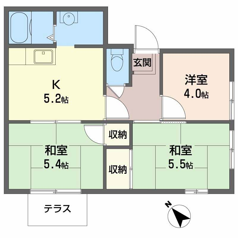 - K5.2帖、洋室4帖、和室5.5帖、和室5.4帖