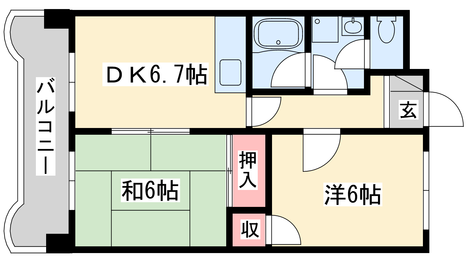 - DK6.7帖、洋室6帖、和室6帖