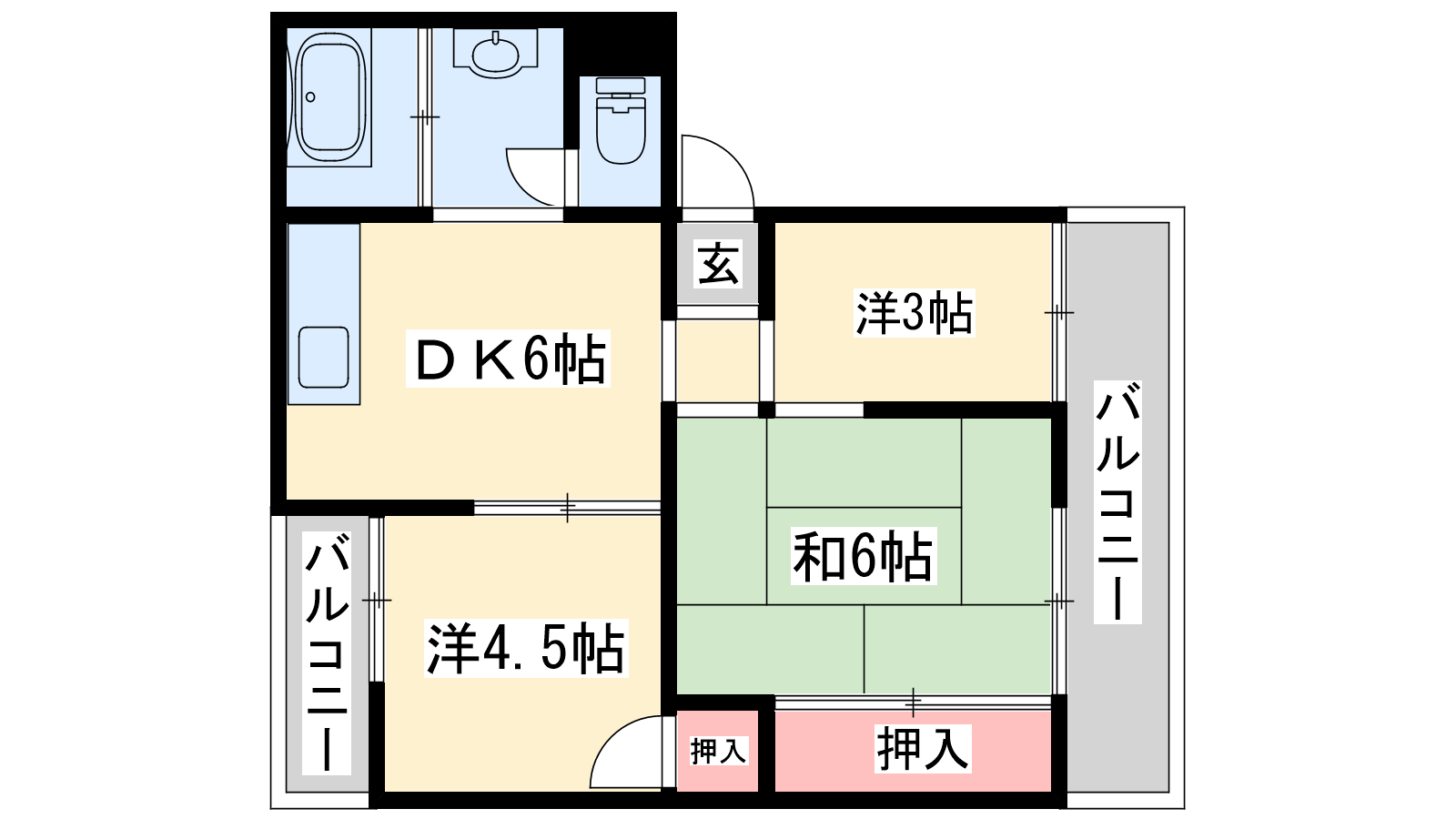 - DK6帖、和室6帖、洋室4.5帖、洋室3帖