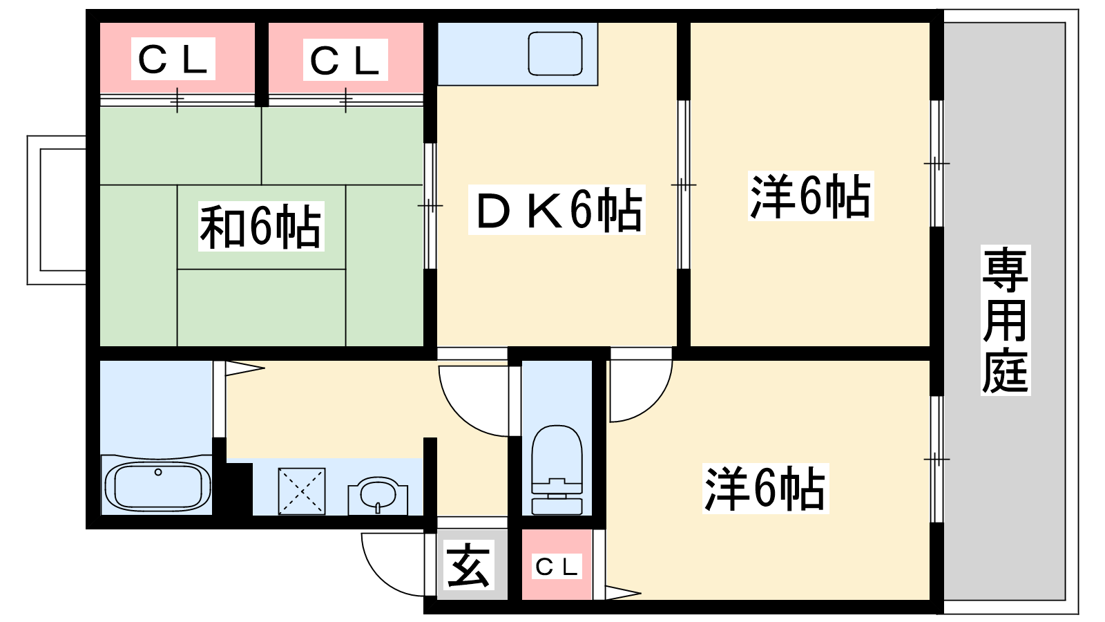 - DK6帖、洋室6帖、洋室6帖、和室6帖