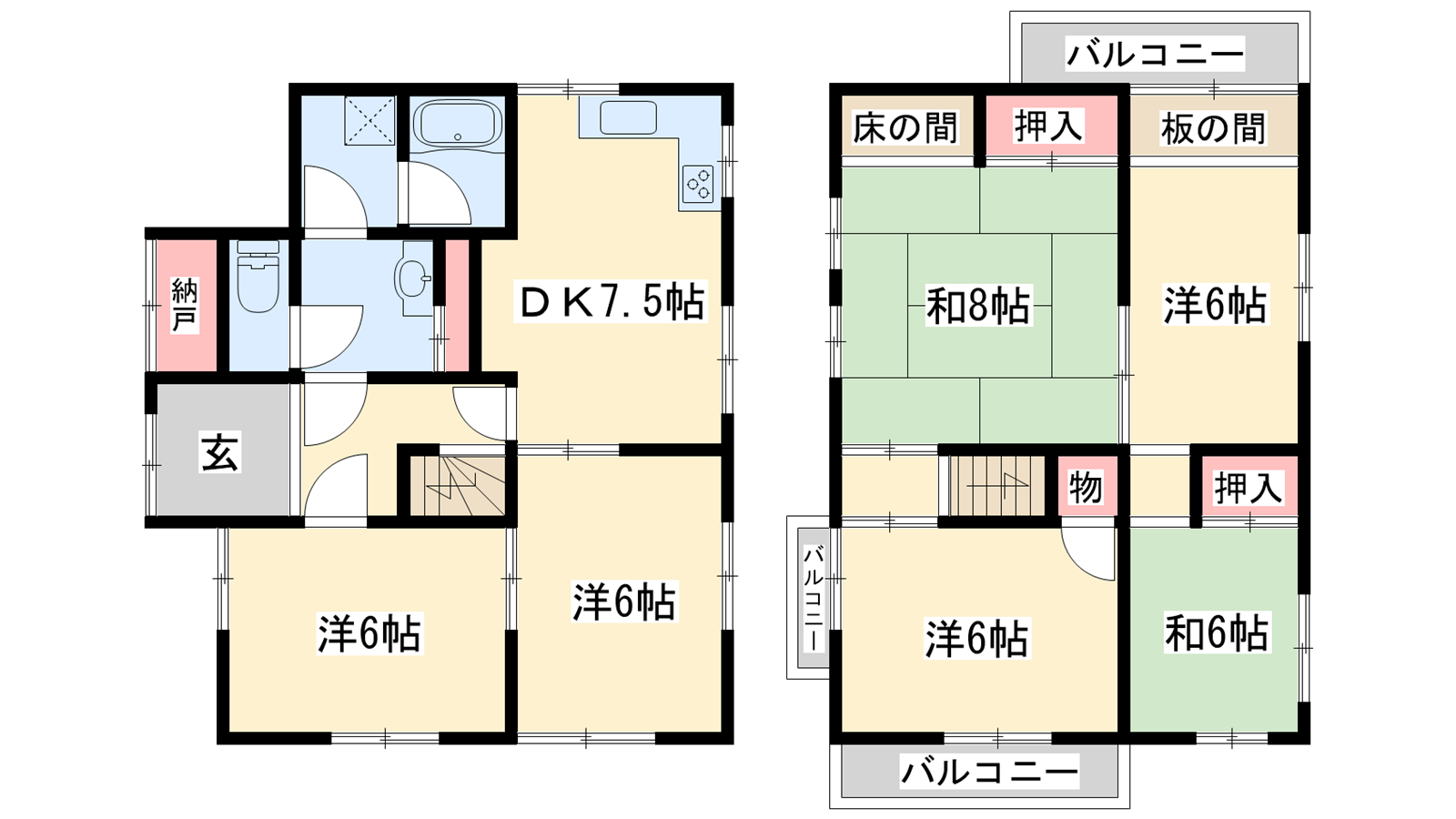 - DK7.5帖、洋室6帖、洋室6帖、洋室6帖、洋室6帖、和室8帖、和室4.5帖