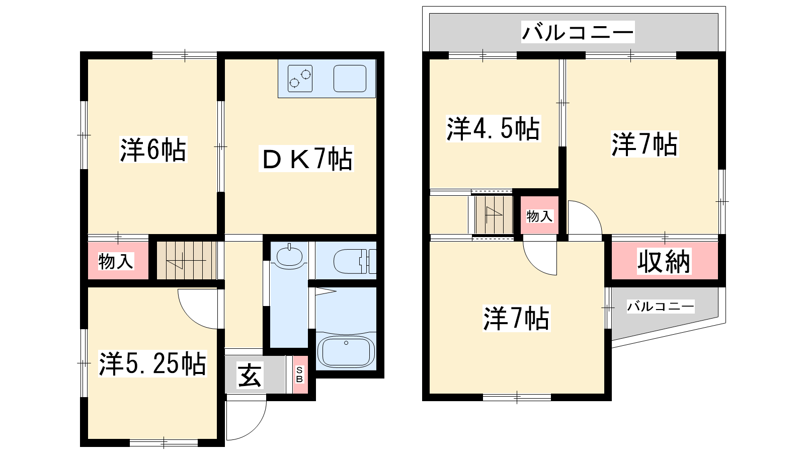 - DK7帖、洋室7帖、洋室7帖、洋室6帖、洋室5.25帖、洋室4.5帖