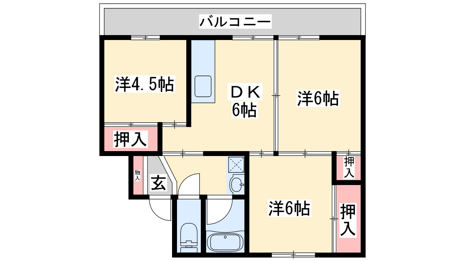 - DK6帖、洋室6帖、洋室6帖、洋室4.5帖
